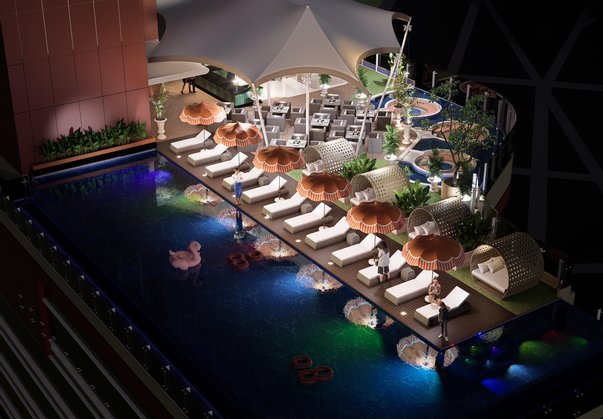 The Infinity Pool at Trans Beach Club offers a stunning escape above the city with elegant design and panoramic sunset views.